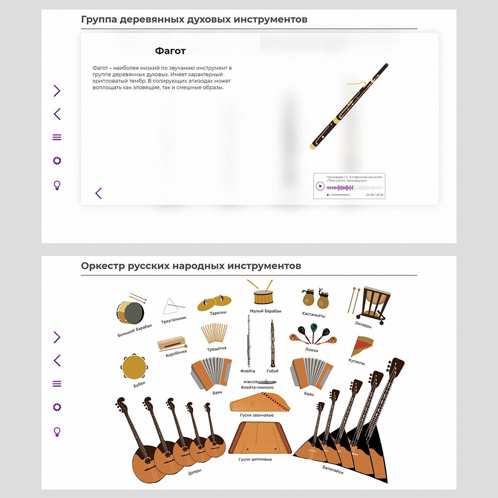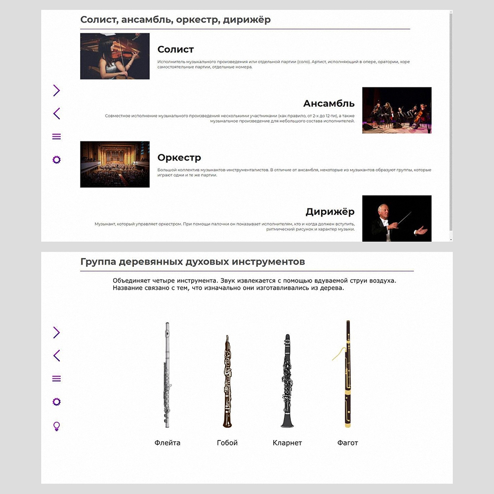 • обучающий материал (тексты, ноты, иллюстрации, аудио- и видеофрагменты);