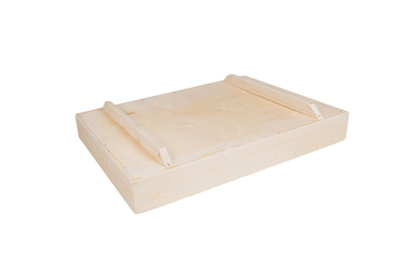 Песочница сделана из ДЕРЕВА, дно из влагостойкой фанеры. Песочница покрыта специальным водостойким лаком, что позволяет работать с влажным песком и ВОДОЙ Все стыки и швы герметизированы.