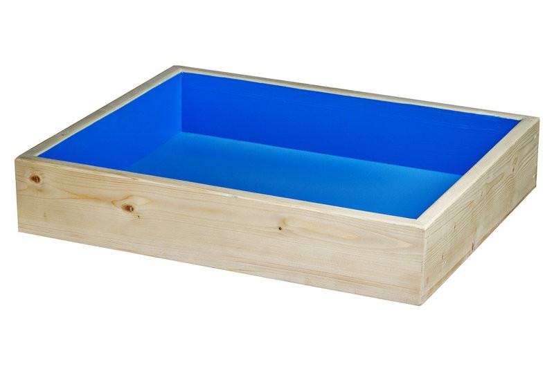 Песочница сделана из ДЕРЕВА, дно из влагостойкой фанеры. Песочница покрыта специальным водостойким лаком, что позволяет работать с влажным песком и ВОДОЙ Все стыки и швы герметизированы.