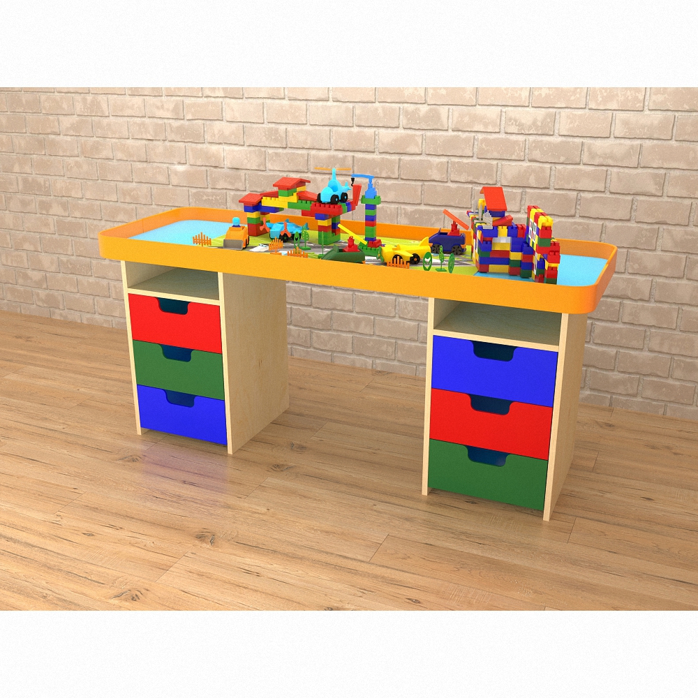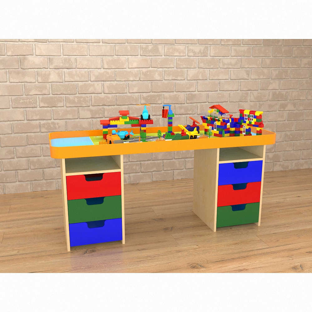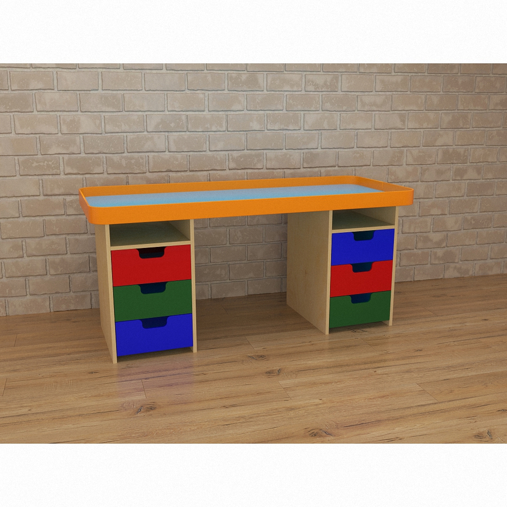 Стол “Знайка” очень удобен – его конструкция позволяет с удобством разместить вокруг себя как тандем педагог-ученик для проведения индивидуального занятия, так и собрать небольшую группу детей для совместного игрового или учебного времяпрепровождения. К тому же, “Знайка” выгодно отличается от обычных столов для дошкольников – наличие 6-ти ящиков для хранения и 2-х открытых полок позволяет разместить разнообразные весёлые игровые наборы и учебные материалы (деревянный или пластиковый конструктор, фигурки животных, людей, птиц, даже песок – космический, кинетический или обычный), благодаря которым многократно возрастает игровой потенциал стола и качество проводимых за ним развивающих занятий, а это самым лучшим образом влияет на усвоение детьми материала.