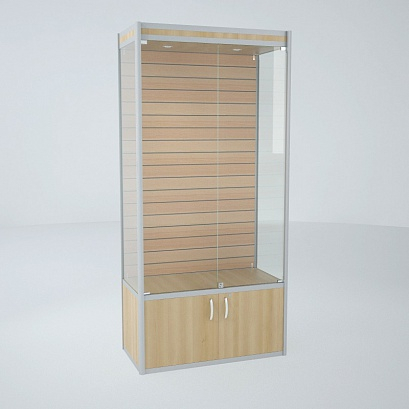 В комплект витрины входит три стеклянные полки, задняя стенка стекло, замки на дверках. Возможно, заменить заднюю стенку на двп или зеркало. В верхней части подсветка (два точечных светильника).