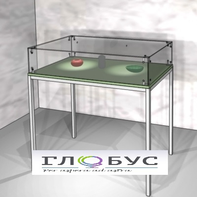 Витрина для музея на металлическом каркасе 1000х1000х600. Колпак 200х1000х600