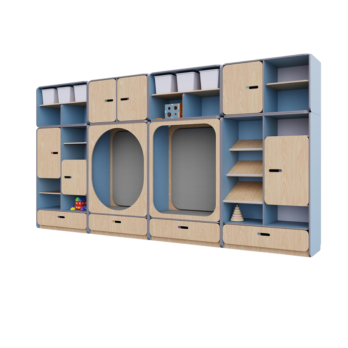 • Стенка для хранения игрушек и дидактических материалов является прекрасным решением для современных детских садов, где важны удобство, безопасность и гигиена.