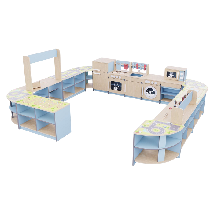 Главная Каталог Подготовительная группа и детский сад Мебель для детского сада Игровая мебель Игровая зона «Островок мастеров» из коллекции мебели «НЕГА» (голубой)