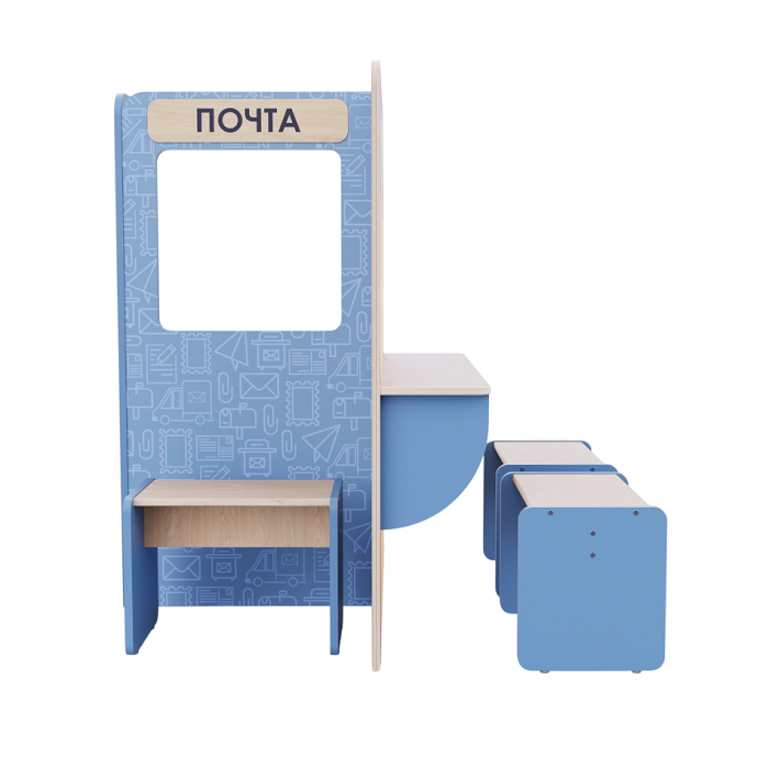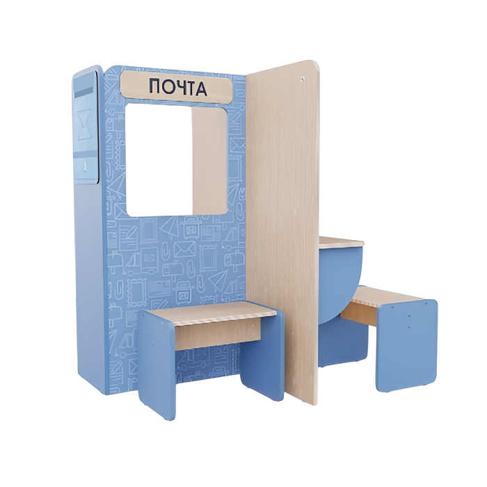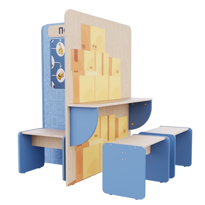 Пространство для сюжетно-ролевых игр в детских садах и дошкольных учреждениях, чтобы дети могли в приближенном к реальности пространстве попробовать себя в роли служащего почтового ведомства, службы доставки и их клиента.
