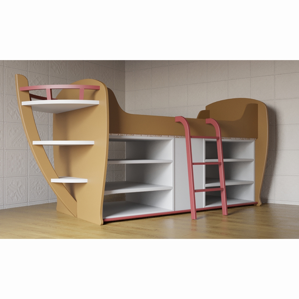 Кровать-чердак «Корабль» предназначена для детей от 3 до 12 лет. Конструкция кровати надежна и прочна – это гарантирует безопасную эксплуатацию: лестница расположена под небольшим наклоном, а ступеньки надежно закреплены; форма предотвращает соскальзывание ноги ребенка. Кровать также оборудована множеством полок, где ребенок может хранить свои вещи, книги и игрушки. Выполнена в нейтральной цветовой гамме, что позволяет использовать ее в помещении с любым интерьером.