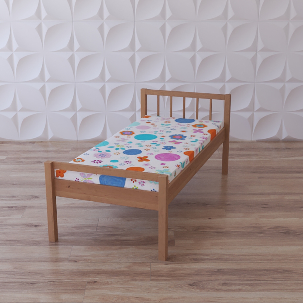 Кровать детская “Минимал”односпальная, может быть натурального цвета древесины или окрашенной; имеет простую лаконичную прямоугольную форму с двумя спинками – изголовьем и изножьем – и четырьмя ножками. Мебельный модуль предназначен для оснащения групп ДОУ, развивающих центров, будет уместен и в использовании дома. Матрас в комплект не входит.