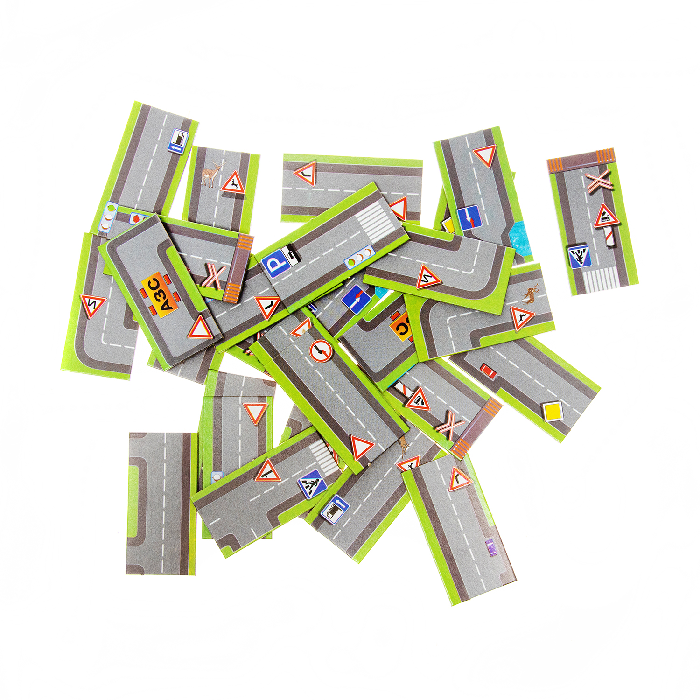 Домино "Дорога" представляет собой набор из 36 карточек с изображением дороги и дорожных знаков.