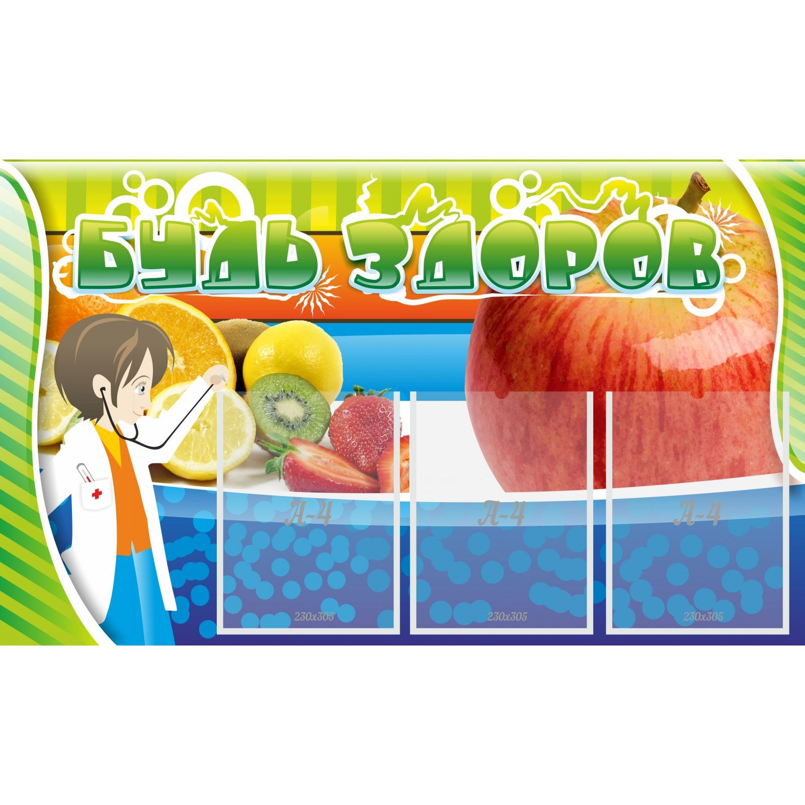 Стенд "Будь здоров" с 3 карманами