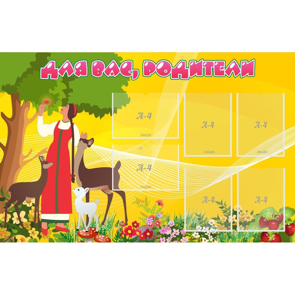 В детском саду информация должны быть доступна для каждого родителя. Стенд поможет донести до мам и пап малышей, посещающих детский сад, самую важную и полезную информацию. Для размещения объявлений, плакатов, советов воспитателей, правил посещения детского сада и других информационных листов на стенде предусмотрено 2 горизонтальных и 4 вертикальных кармана формата А4. А яркий дизайн стенда по мотивам сказки "Аленький цветочек" послужит хорошим украшением помещения.