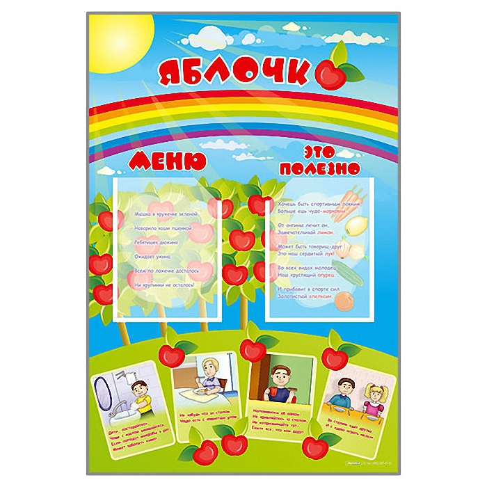 Стенд-меню предназначен для наглядного отображения информации о меню на текущий день и полезных продуктах питания.