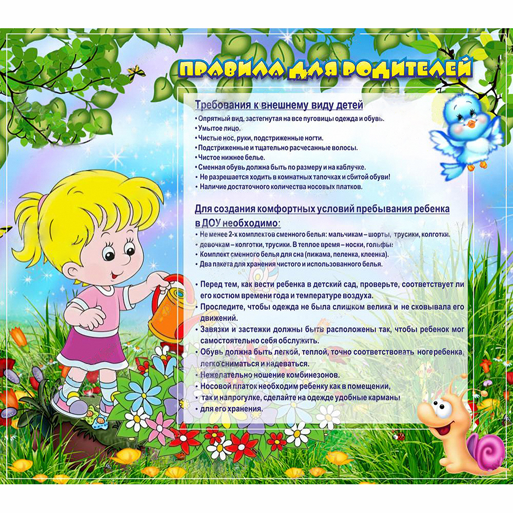 Правила в детском саду существуют не только для малышей, но и для родителей. Поэтому обязательно нужно разместить данный стенд в главном холле детского сада, чтобы каждый родитель мог ознакомиться с полезной информацией и правилами поведения. В эти правила входят правила внешнего вида ребенка, что нужно с собой брать на занятия, когда забирать ребенка и другие важные правовые и организационные моменты, которые обязательно нужно учесть. Поэтому данный стенд — это необходимость, потому что родители тоже должны придерживаться правил детского сада! Потому что только так можно добиться порядка и послушания.
