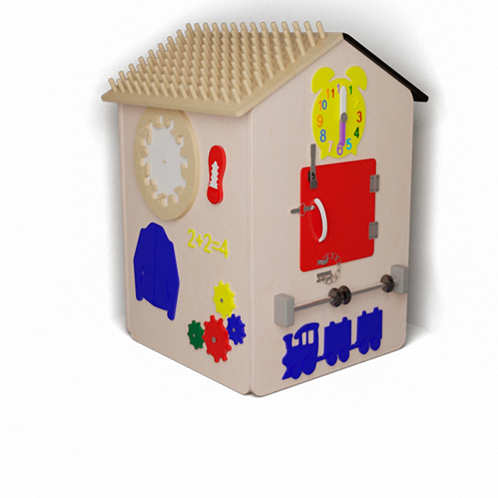 Увлекательная, а главное полезная детская игра, представляет собой игровой комплекс в виде дома, который развивает мелкую моторику и мышление ребенка, прекрасно подойдет для самостоятельной игры, а также для занятий с мамой и педагогом в детском саду, развивающем центре, в кабинете у логопеда и психолога. Широкое разнообразие элементов бизидома вызывает интерес ребенка с первых минут знакомства с яркими и увлекательными элементами. Бизидом выполнен из безопасных и прочных материалов: текстиля, металла и дерева, что позволяет пользоваться игрой с раннего возраста. Каждый элемент развивающей доски крепко скреплены между собой, надежно фиксируются в «рабочем» состоянии.