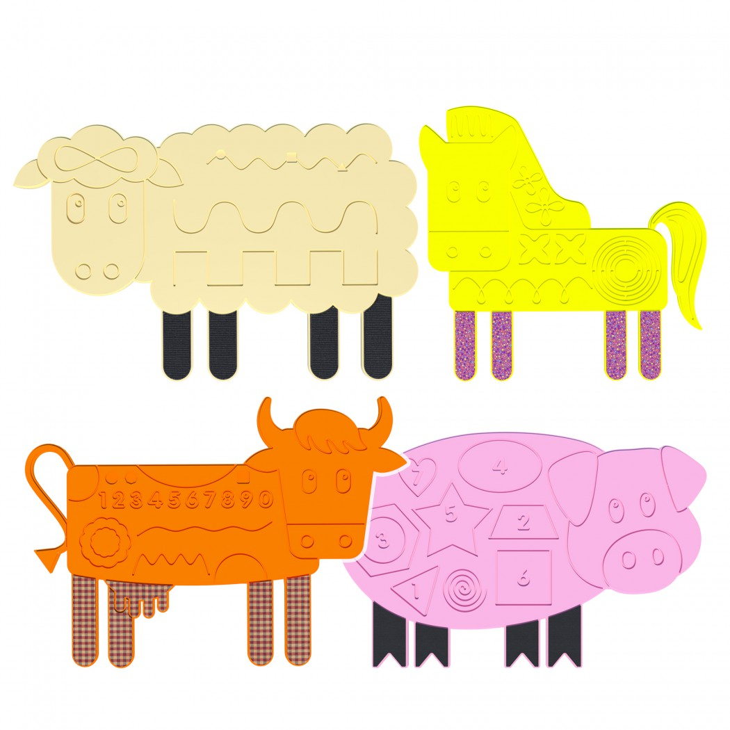Такая ферма развивает у ребят мелкую моторику и зрительно-моторную координацию. Способствуют укреплению пальцев рук, развитию зрительной памяти и изучению счета. Наши животные помогут ребятам подготовить руку к письму и разучить счет до 10.