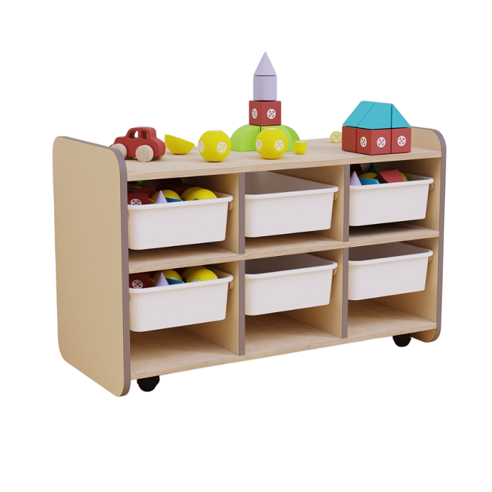 Оборудование является прекрасным решением для современных детских садов и других детских образовательных учреждений, где важны удобство, безопасность и гигиена. Практичные ящики полностью вынимаются из шкафа для очистки и дезинфекции. Они легкие и прочные, и дети могут самостоятельно ими пользоваться, чтобы достать или положить игрушку. Высота модуля также позволяет размещать на поверхности конструкции обучающие игры и дидактическое оборудование.