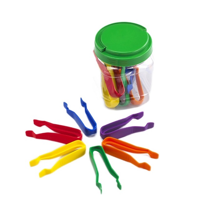 Красочные пинцеты отлично подходят для игр со счетом и сортировкой. Удобны для маленьких рук, совершенствуют мелкую моторику. 6 цветов, длинна 12см, 12 штук в крепкой ПЭТ банке.