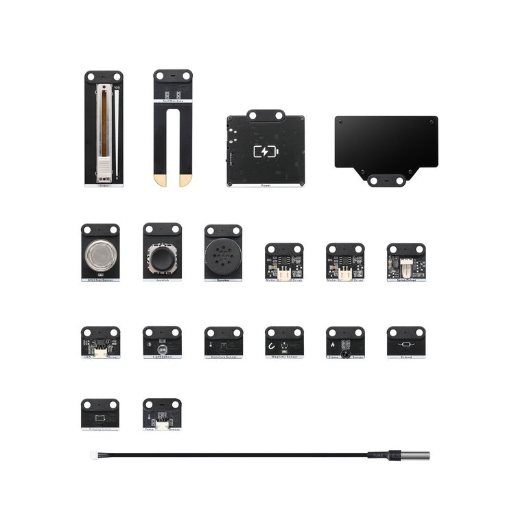 Ресурсный набор к программируемому в Arduino-подобной среде контроллеру HaloCode (нет в составе) для изучение основ искусственного интеллекта и интернета вещей, содержащий 18 электронных модулей mBuild и 7 типов аксессуаров к ним. С помощью набора обучающиеся могут изучать ИИ, интернет вещей, применять технологии в повседневной жизни и выполнять увлекательные проекты с помощью датчиков и визуального программирования. Модули программируются как на визуальном языке, так и на Python. Конструктивно модули совместимы с Makeblock и Lego.